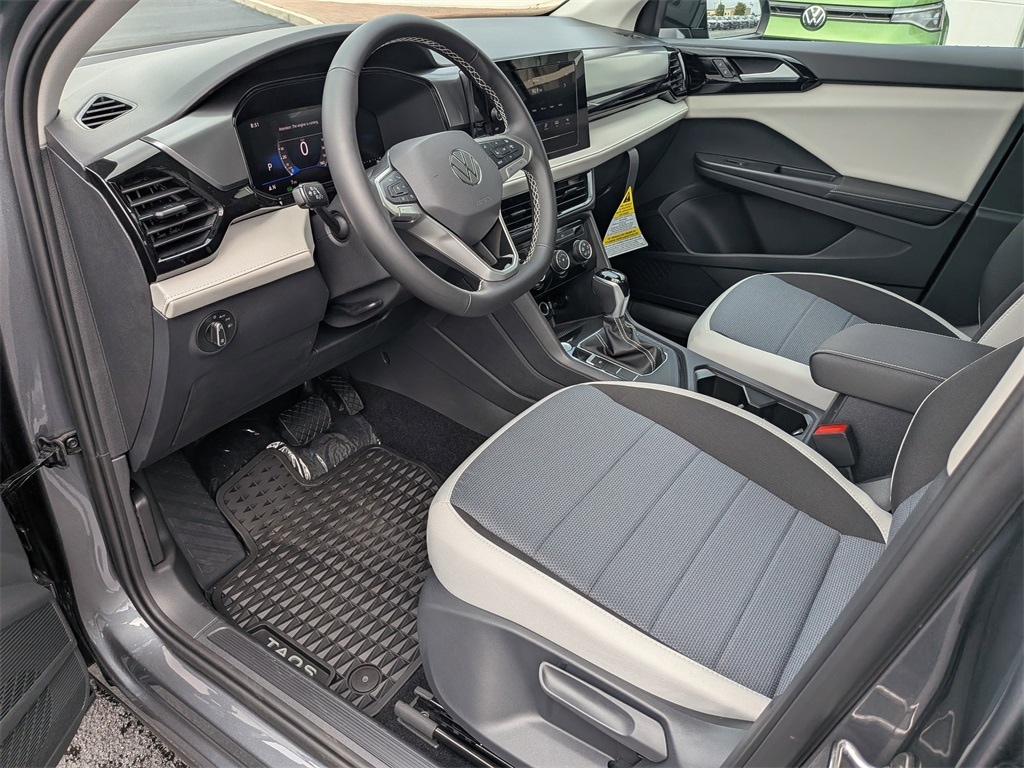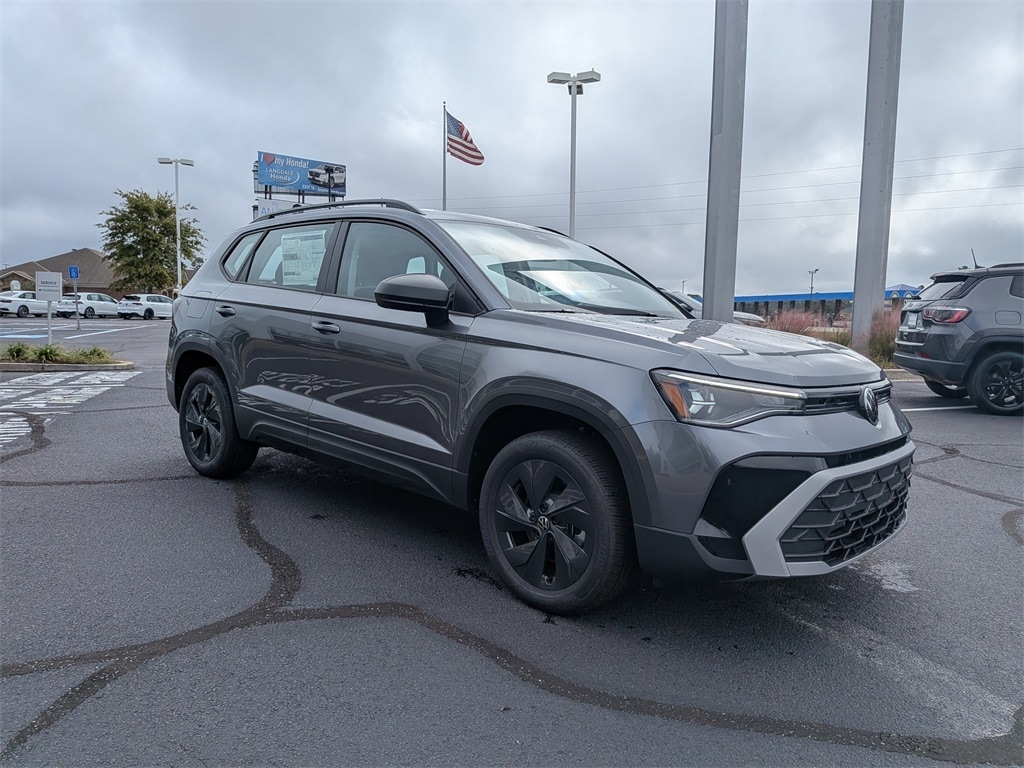 Platinum Gray Metallic 2025 Volkswagen Taos 1.5T S FWD 8-Speed Automatic with Tiptronic 1.5L I4 Turbocharged DOHC 16V LEV3-SULEV30 174hp 28/36 City/Highway MPG