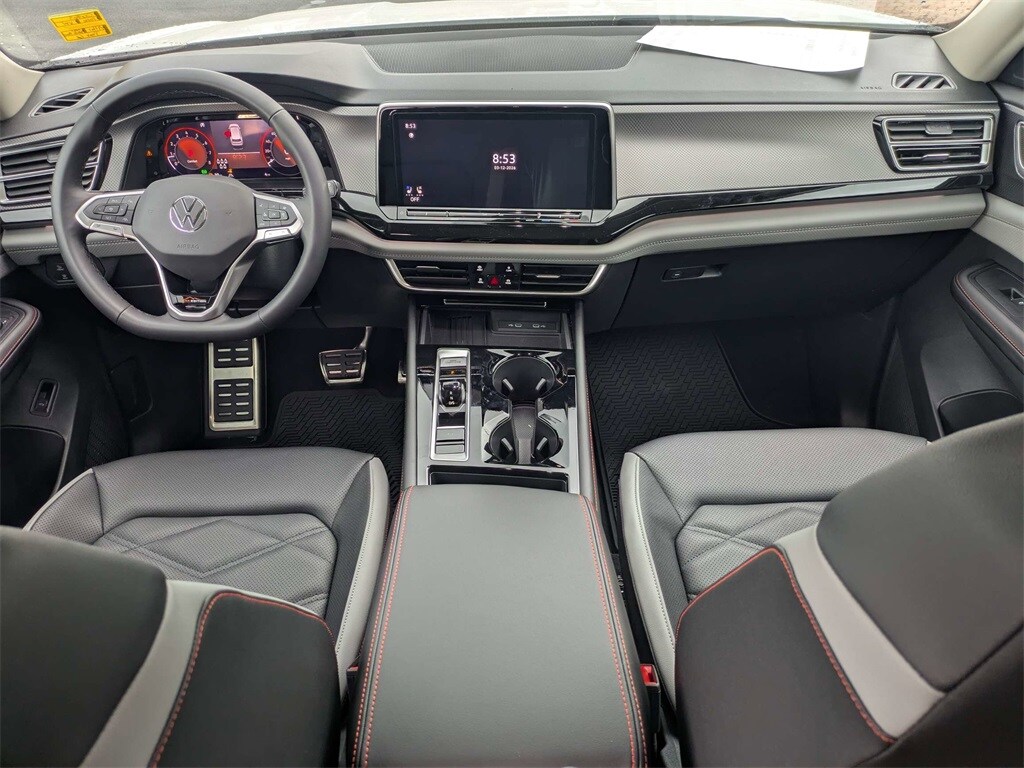 AWD 3rd row seats: split-bench, 4-Wheel Disc Brakes, 4-Wheel Independent Suspension, 6 Speakers, ABS brakes, Air Conditioning, Alloy wheels, AM/FM radio: SiriusXM with 360L, Auto High-beam Headlights, Auto-dimming Rear-View mirror, Automatic temperature control, Brake assist, Bumpers: body-color, Compass, Delay-off headlights, Driver door bin, Driver vanity mirror, Dual front impact airbags, Dual front side impact airbags, Electronic Stability Control, Emergency communication system: VW Car-Net Safe & Secure 5-year, Exterior Parking Camera Rear, Four wheel independent suspension, Front anti-roll bar, Front Bucket Seats, Front Center Armrest, Front dual zone A/C, Front fog lights, Front reading lights, Fully automatic headlights, Garage door transmitter: Homelink, Heated and Actively Ventilated Front Bucket Seats, Heated door mirrors, Heated front seats, Heated steering wheel, Illuminated entry, Low tire pressure warning, Occupant sensing airbag, Outside temperature display, Overhead airbag, Overhead console, Panic alarm, Passenger door bin, Passenger vanity mirror, Perforated V-Tex Leatherette Seating Surfaces, Power door mirrors, Power driver seat, Power Liftgate, Power moonroof: Panoramic, Power steering, Power windows, Radio data system, Radio: MIB3 Composition Media, Rain sensing wipers, Rear air conditioning, Rear anti-roll bar, Rear reading lights, Rear seat center armrest, Rear window defroster, Rear window wiper, Remote keyless entry, Security system, Speed control, Speed-sensing steering, Split folding rear seat, Spoiler, Steering wheel mounted audio controls, Tachometer, Telescoping steering wheel, Tilt steering wheel, Traction control, Trip computer, Turn signal indicator mirrors, Variably intermittent wipers, Ventilated front seats, Wheels: 18" Black Painted 5-Spoke Alloy. 2026 Volkswagen Atlas 2.0T Peak Edition