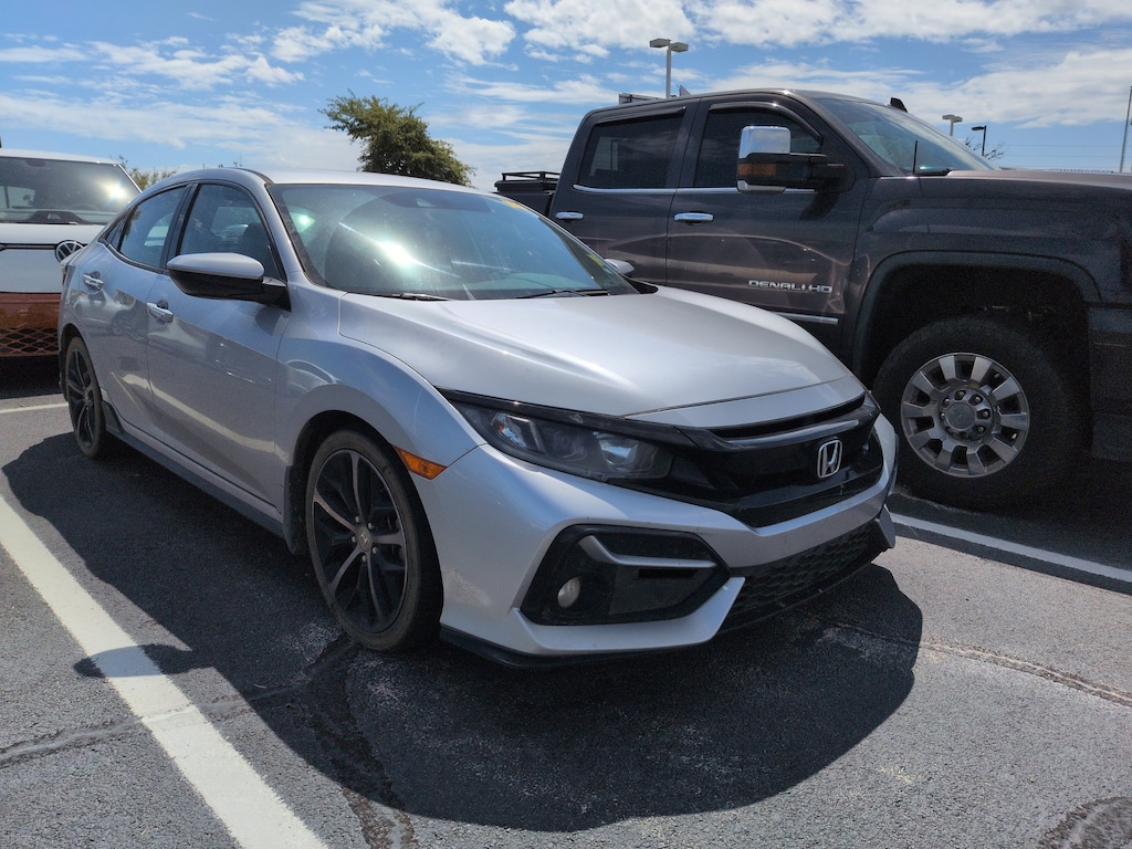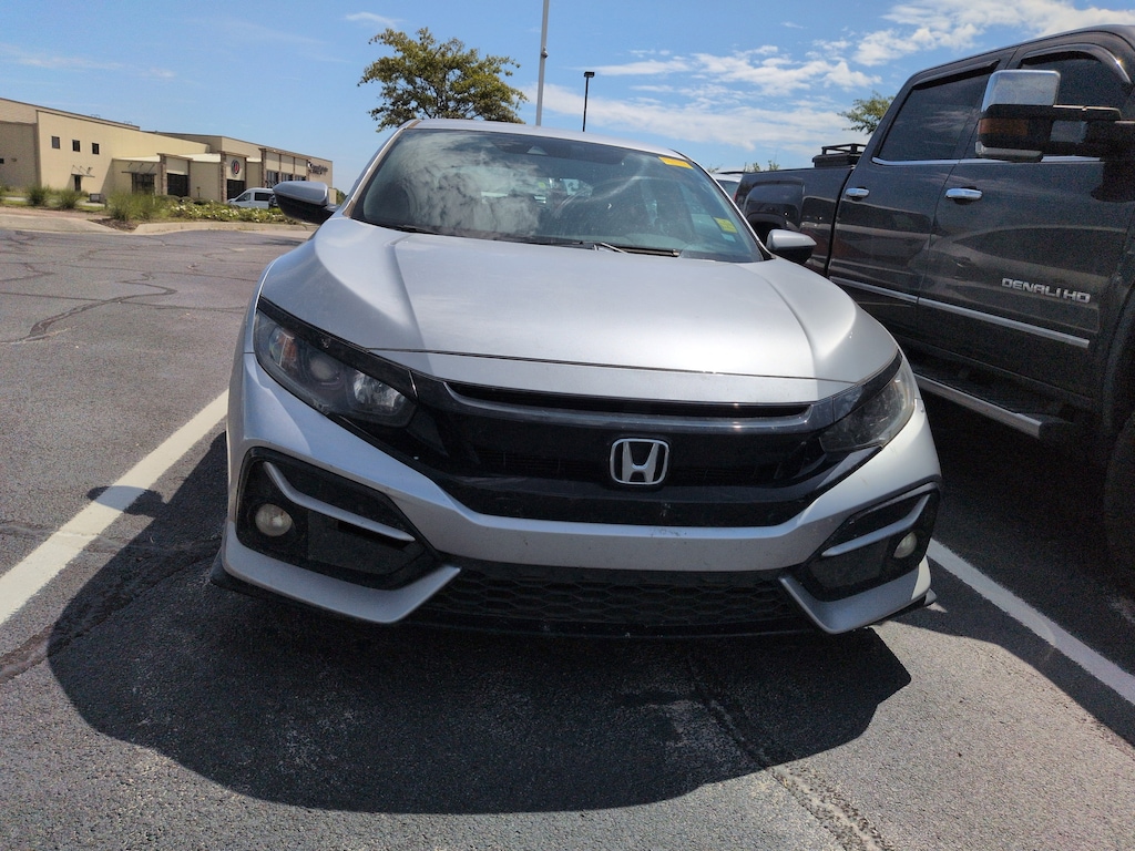 Silver 2021 Honda Civic Sport FWD CVT 1.5L I4 DOHC 16V Cloth, 18" Alloy Wheels, 4-Wheel Disc Brakes, 8 Speakers, ABS brakes, Adaptive Cruise Control: Adaptive Cruise Control (ACC) with Low-Speed Follow, Air Conditioning, Alloy wheels, AM/FM radio, Apple CarPlay/Android Auto, Auto High-beam Headlights, Automatic temperature control, Brake assist, Bumpers: body-color, Delay-off headlights, Driver door bin, Driver vanity mirror, Dual front impact airbags, Dual front side impact airbags, Electronic Stability Control, Emergency communication system: HondaLink, Exterior Parking Camera Rear, Fabric Seating Surfaces, Forward collision: Collision Mitigation Braking System (CMBS) + FCW mitigation, Four wheel independent suspension, Front anti-roll bar, Front Bucket Seats, Front Center Armrest, Front fog lights, Front reading lights, Fully automatic headlights, Illuminated entry, Lane departure: Lane Keeping Assist System (LKAS) active, Leather Shift Knob, Low tire pressure warning, Occupant sensing airbag, Outside temperature display, Overhead airbag, Panic alarm, Passenger door bin, Passenger vanity mirror, Power door mirrors, Power steering, Power windows, Radio data system, Radio: 180-Watt Audio System w/8 Speakers, Rear anti-roll bar, Rear seat center armrest, Rear window defroster, Rear window wiper, Remote keyless entry, Security system, Speed control, Speed-sensing steering, Split folding rear seat, Spoiler, Steering wheel mounted audio controls, Tachometer, Telescoping steering wheel, Tilt steering wheel, Traction control, Trip computer.