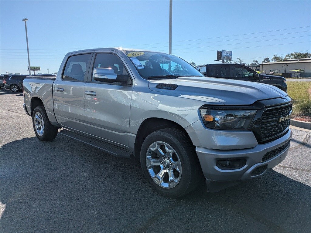 2022 Ram 1500 Big Horn/Lone Star 2nd Row In Floor Storage Bins, 3 Rear Seat Head Restraints, 33 Gallon Fuel Tank, 4 Way Front Headrests, 4-Wheel Disc Brakes, 48V Belt Starter Generator, 4G LTE Wi-Fi Hot Spot, 6 Speakers, 8.4" Touchscreen Display, ABS brakes, Air Conditioning, Air Conditioning ATC w/Dual Zone Control, All Plant-Installed Decals, All R1 High Radios, All Radio Equipped Vehicles, Alloy wheels, AM/FM radio, Anti-Spin Differential Rear Axle, Apple CarPlay, Auto-Dimming Exterior Driver Mirror, Auto-Dimming Rear-View Mirror, Big Horn Level 1 Equipment Group, Black Exterior Mirrors, Black Interior Accents, Black Premium Power Mirrors, Bluetooth Handsfree Phone & Audio, Body Color Exterior Mirrors, Body Color Front Bumper, Body Color Premium Power Mirrors, Body Color Rear Bumper w/Step Pads, Brake assist, Bucket Seats, Bumpers: chrome, Class IV Receiver Hitch, Cloth Bench Seat, Cluster 3.5" TFT Color Display, Compass, Connected Travel & Traffic Services, Connectivity - US/Canada, Convex Wide-Angle Mirror Insert, Delay-off headlights, Delete LED Lamp - Floor Console Bin, Deluxe Cloth Bucket Seats, Disassociated Touchscreen Display, Driver door bin, Dual front impact airbags, Dual front side impact airbags, Electronic Stability Control, Emergency communication system: SiriusXM Guardian, Exterior Mirrors Courtesy Lamps, Exterior Mirrors w/Heating Element, Exterior Mirrors w/Supplemental Signals, For Details, Visit DriveUconnect.com, Front anti-roll bar, Front Center Armrest w/Storage, Front fog lights, Front License Plate Bracket, Front reading lights, Front Seat Back Map Pockets, Front wheel independent suspension, Full Length Floor Console, Fully automatic headlights, Global Telematics Box Module (TBM), Glove Box Lamp, Google Android Auto, GPS Antenna Input, GPS Navigation, HD Radio, Heated door mirrors, Heavy-Duty Engine Cooling, Illuminated entry, Integrated Center Stack Radio, Integrated Voice Command w/Bluetooth, Leather steering wheel, Lone Star Badge, Low tire pressure warning, Manual Adjust 4-Way Front Passenger Seat, Occupant sensing airbag, Outside temperature display, Overhead airbag, Overhead console, Panic alarm, ParkView Rear Back-Up Camera, Passenger door bin, Passenger vanity mirror, Power 2-Way Driver Lumbar Adjust, Power 8-Way Driver Seat, Power Adjustable Pedals, Power door mirrors, Power steering, Power windows, Power-Folding Mirrors, Quick Order Package 27R Lone Star (Regional), Radio data system, Radio: Uconnect 5 Nav w/8.4" Display, Radio: Uconnect 5 W w/8.4" Display, Rear 60/40 Folding Seat, Rear anti-roll bar, Rear Center Armrest, Rear Dome w/On/Off Switch Lamp, Rear Power Sliding Window, Rear step bumper, Rear Window Defroster, Remote keyless entry, SiriusXM Radio Service, SiriusXM Satellite Radio, SiriusXM w/360L, Speed control, Split folding rear seat, Sport Appearance Package, Sport Decal, Steering wheel mounted audio controls, Sun Visors w/Illuminated Vanity Mirrors, Tachometer, Telescoping steering wheel, Tilt steering wheel, Traction control, Trailer Brake Control, Trip computer, Universal Garage Door Opener, USB Host Flip, Variably intermittent wipers, Voltmeter, Wheels: 20" x 9" Aluminum Chrome Clad (WRK).